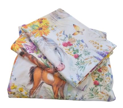 Set de pat dublu pentru 2 persoane, 3 piese, Flori de Vara by ARIALE, bumbac ranforce, Multicolor