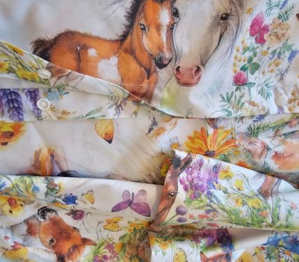 Realizat din 100% bumbac natural, acest material se remarcă prin finețea țesăturii, rezistența la spălări repetate care păstrează culorile vii și detaliile perfect conturate în timp.