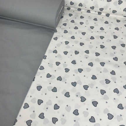 Set de Pat din Bumbac Ranforce – Inimi Gri, Ediție Specială Ziua Iubirii, pentru 2 persoane, 3 piese