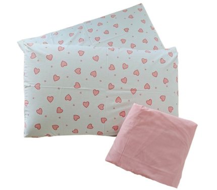 Set de Pat din Bumbac Ranforce – Inimi Roz, Ediție Specială Ziua Iubirii, pentru 2 persoane, 3 piese