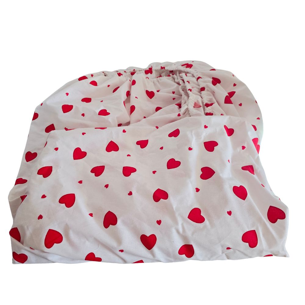 Cearceaf de pat cu elastic Inimi Rosii Ariale, Bumbac