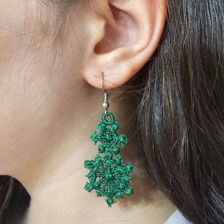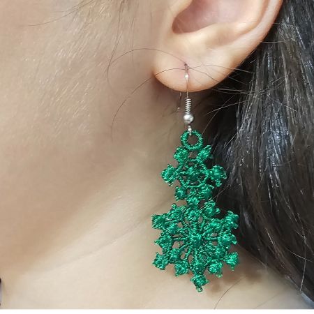 Cercei Brodati Ariale Zambetul Zapezii , fulgi de nea, verde smarald