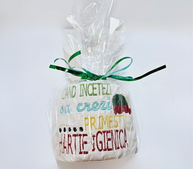 Hartia igienica brodata de la Ariale este o alegere perfecta pentru a aduce un zambet pe fata cuiva, fie ca este vorba despre un prieten, un coleg de birou sau un membru al familiei. Este un cadou ideal pentru orice ocazie, de la aniversari si petreceri pana la evenimente cu tematica umoristica.