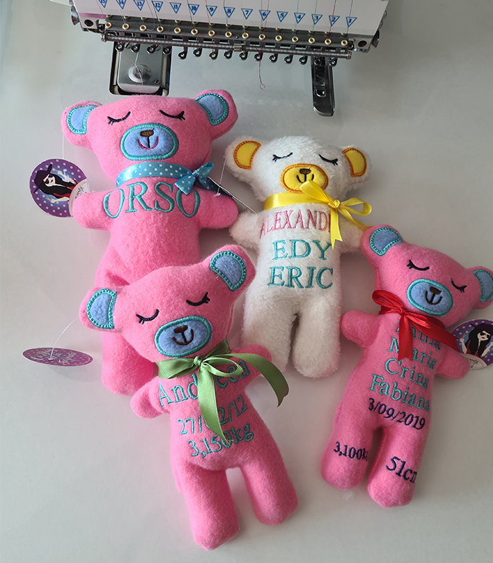 Ursuleț personalizat prin broderie, creat special pentru copii. Sigur, moale și personalizat cu numele și datele nașterii. Un cadou plin de emoție.