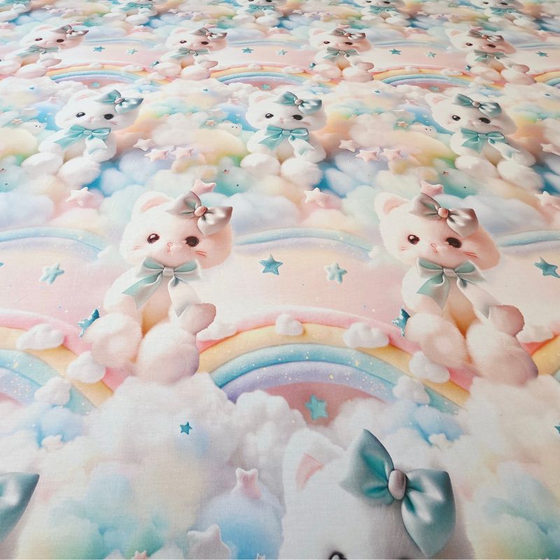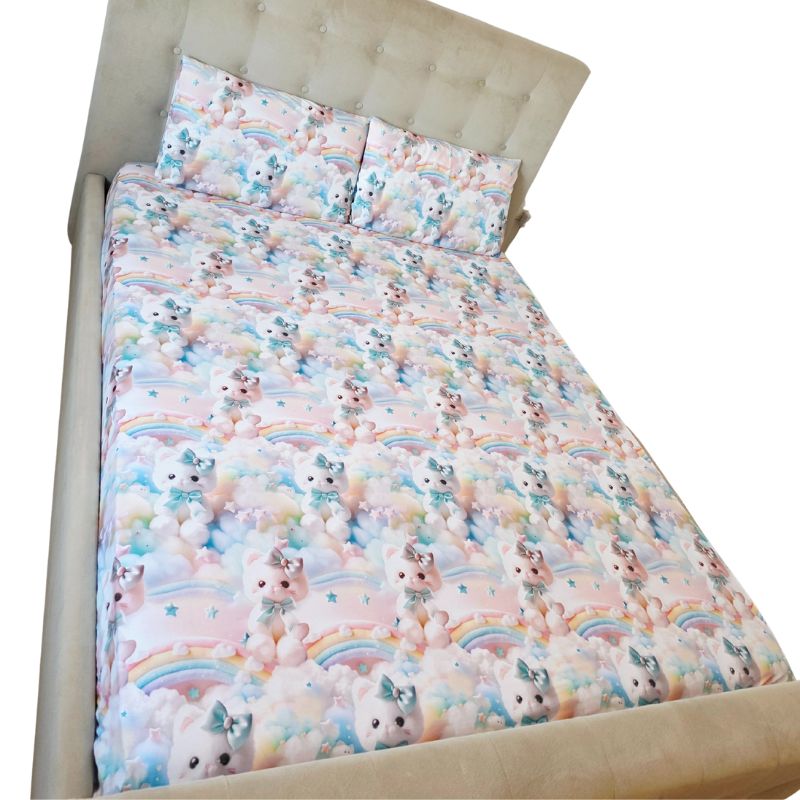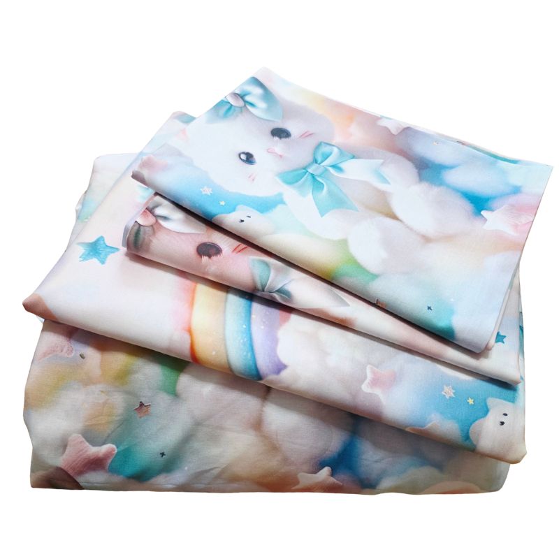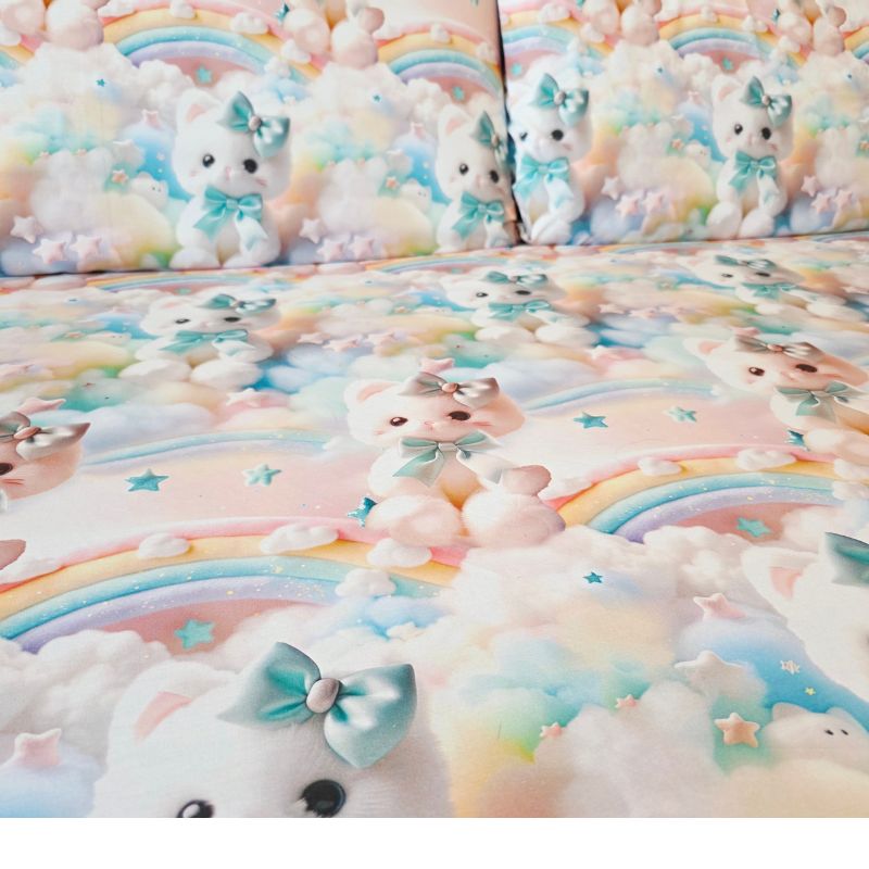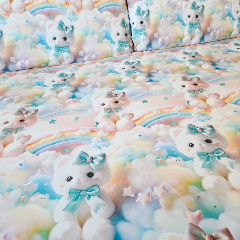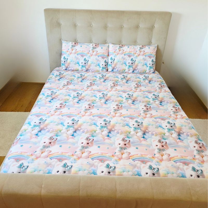 Imprimeul digital 5D redă cu fidelitate detaliile adorabile ale pisicuțelor pufoase, cu fundițe albastre și expresii drăgălașe, aducând o notă de tandrețe și veselie fiecărui dormitor. Este o alegere perfectă pentru copii, adolescenți sau pentru cei care iubesc decorurile delicate, cu personalitate.