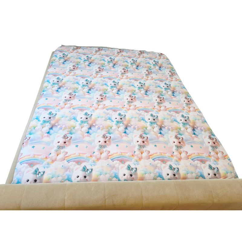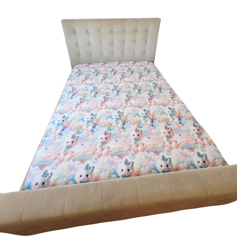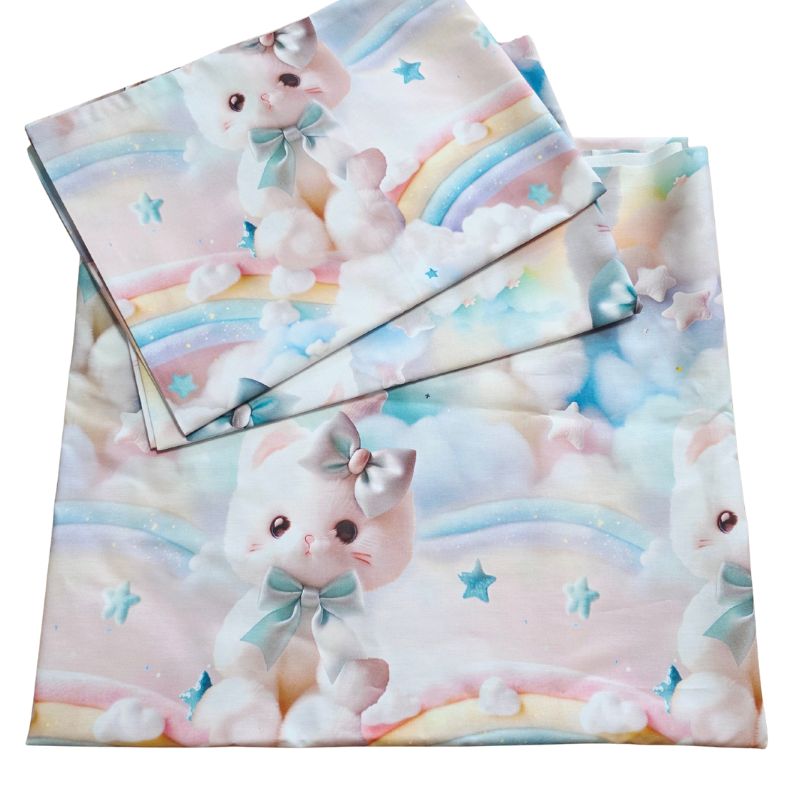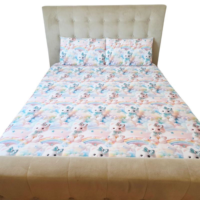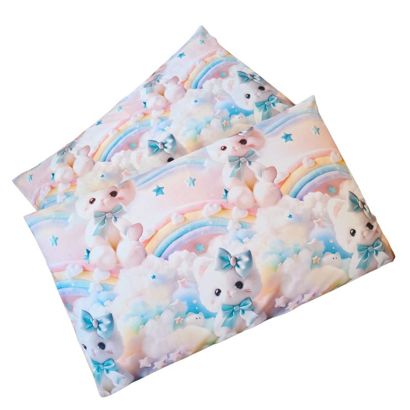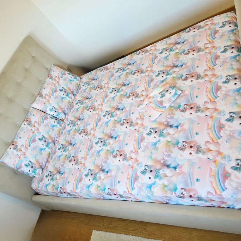 Imprimeul digital 5D redă cu fidelitate detaliile adorabile ale pisicuțelor pufoase, cu fundițe albastre și expresii drăgălașe, aducând o notă de tandrețe și veselie fiecărui dormitor. Este o alegere perfectă pentru copii, adolescenți sau pentru cei care iubesc decorurile delicate, cu personalitate.