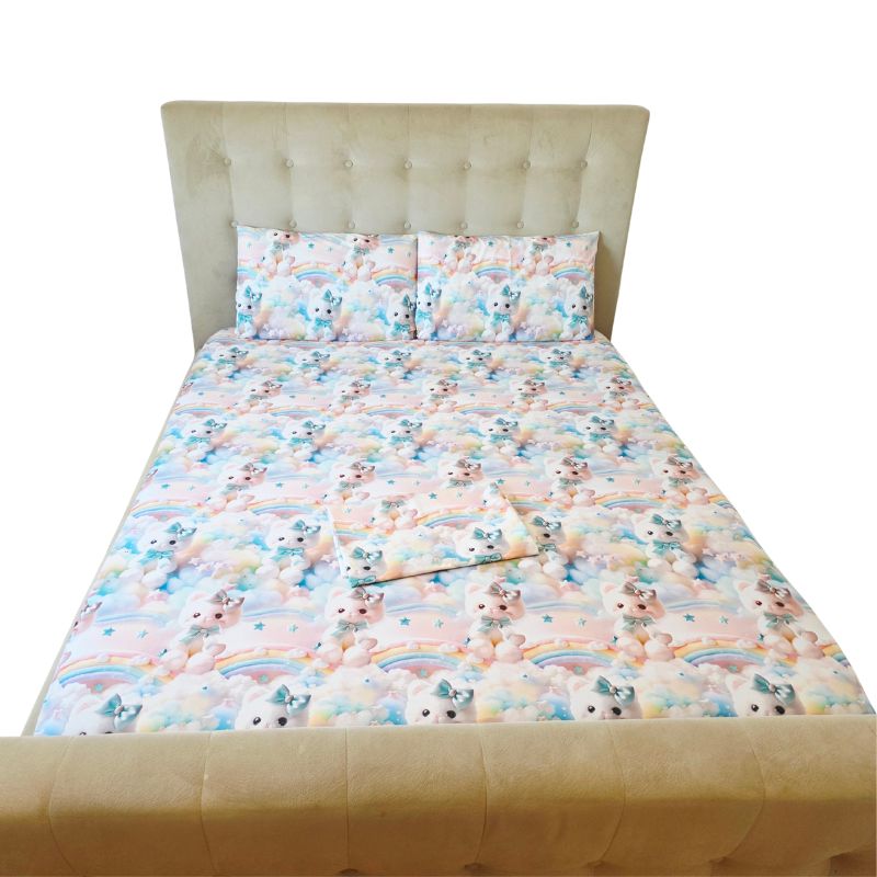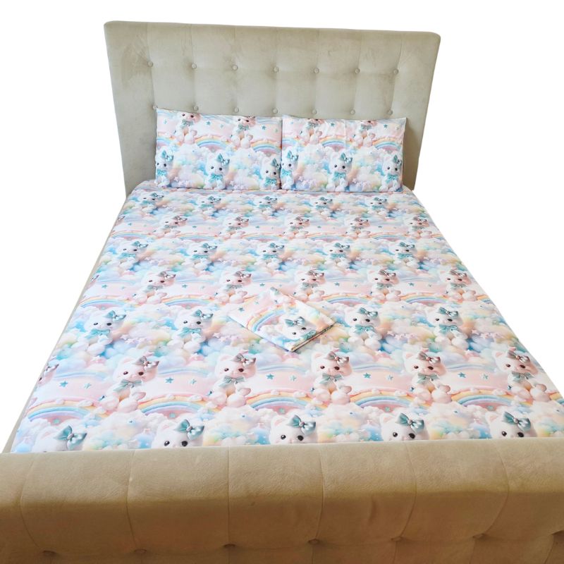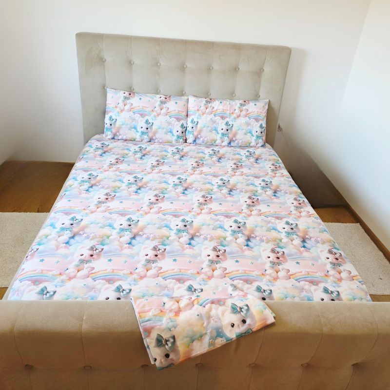 Lenjerie completă Ariale „Pisicuțe” – bumbac ranforce imprimat digital 5D, 4 piese, pat dublu
