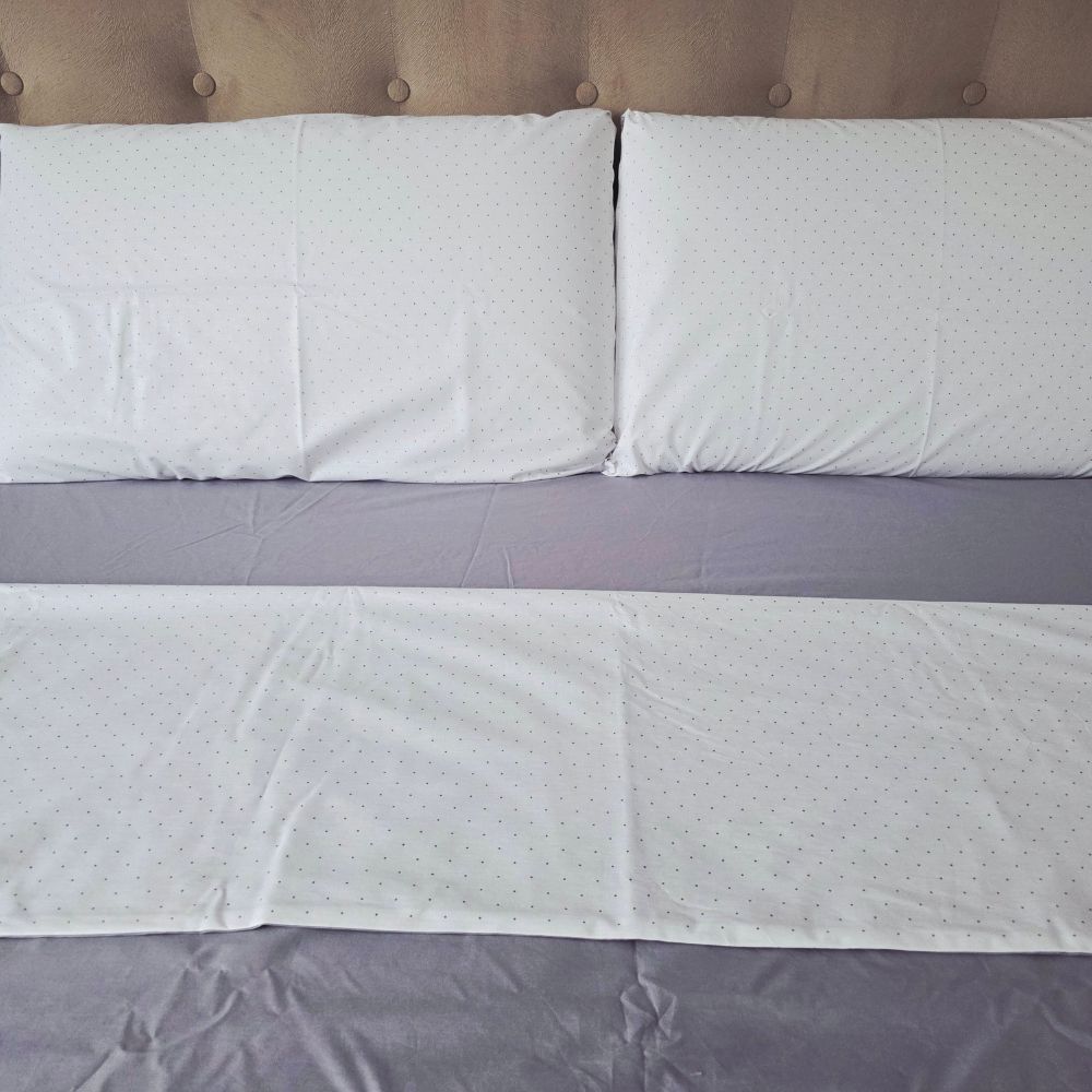 🛏️ Cearceaf pilotă: 200 x 220 cm – o față cu buline, o față gri,