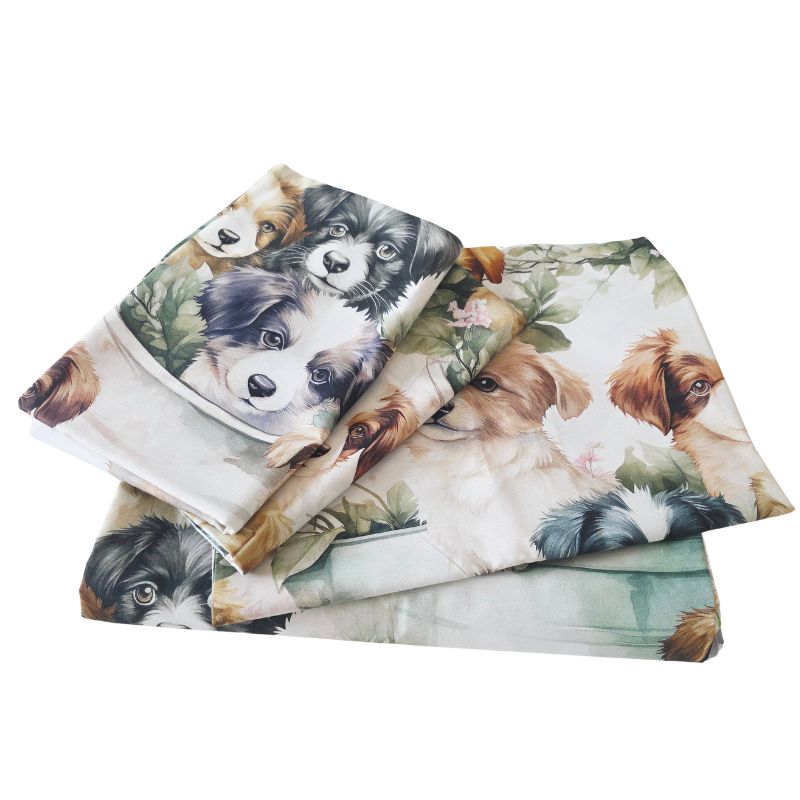 Lenjerie de pat bumbac 100% – Imprimeu „Catelusi 5D Ariale”