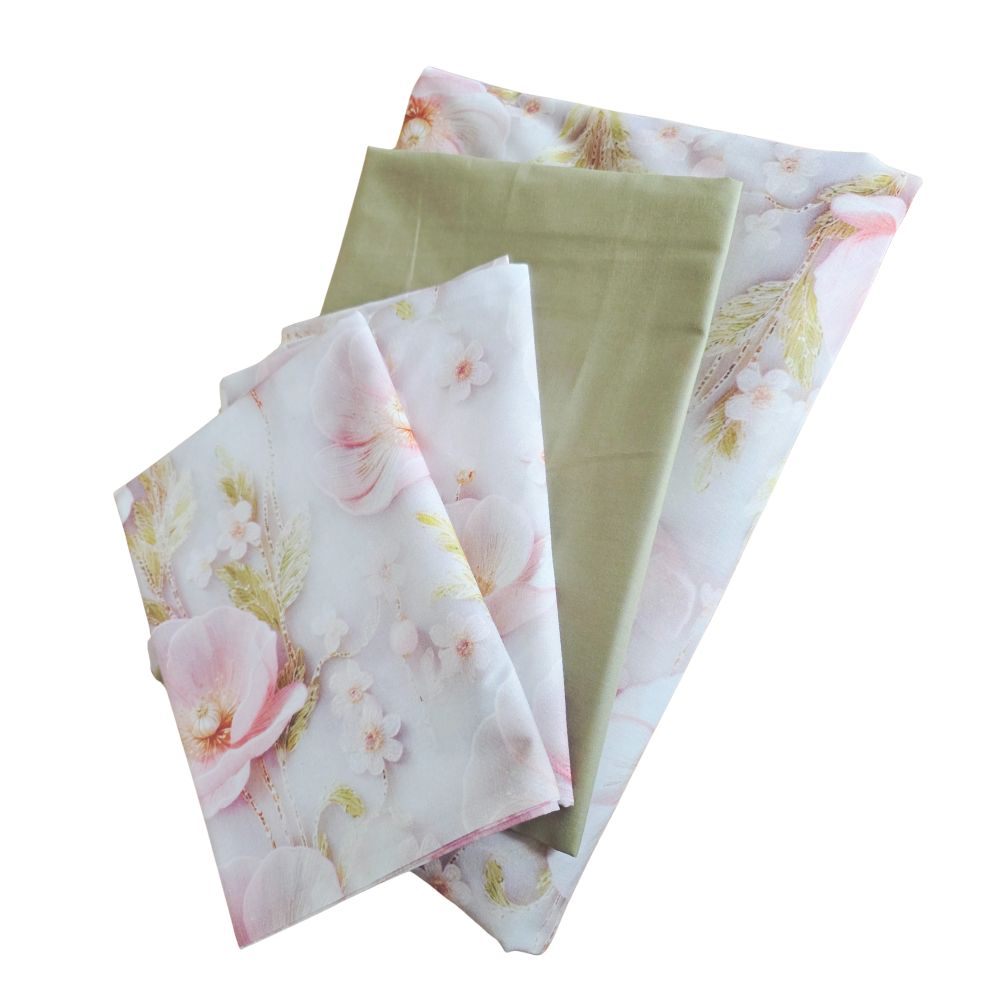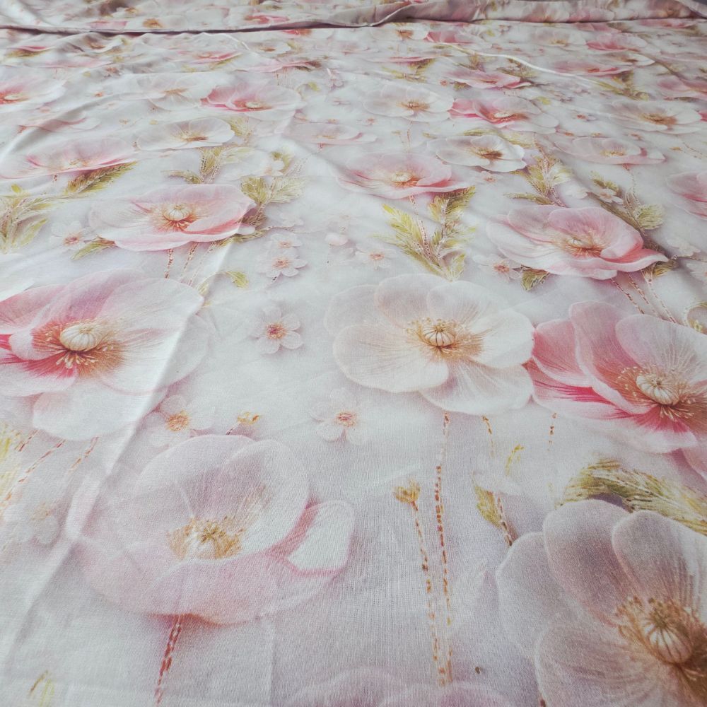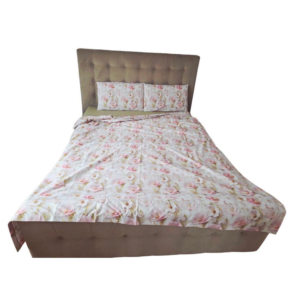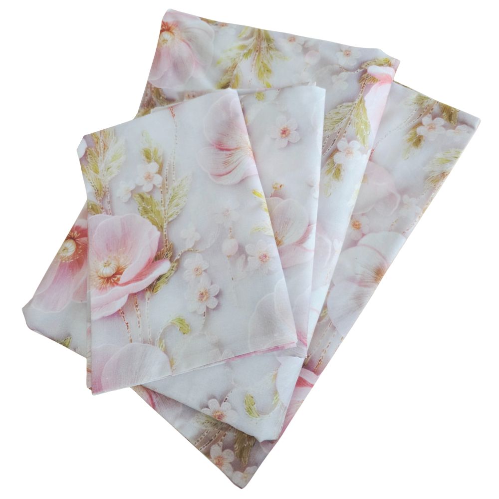 Lenjerie de Pat „Flori pudrate” – Bumbac 100%, Imprimare Digitală, 4 Piese