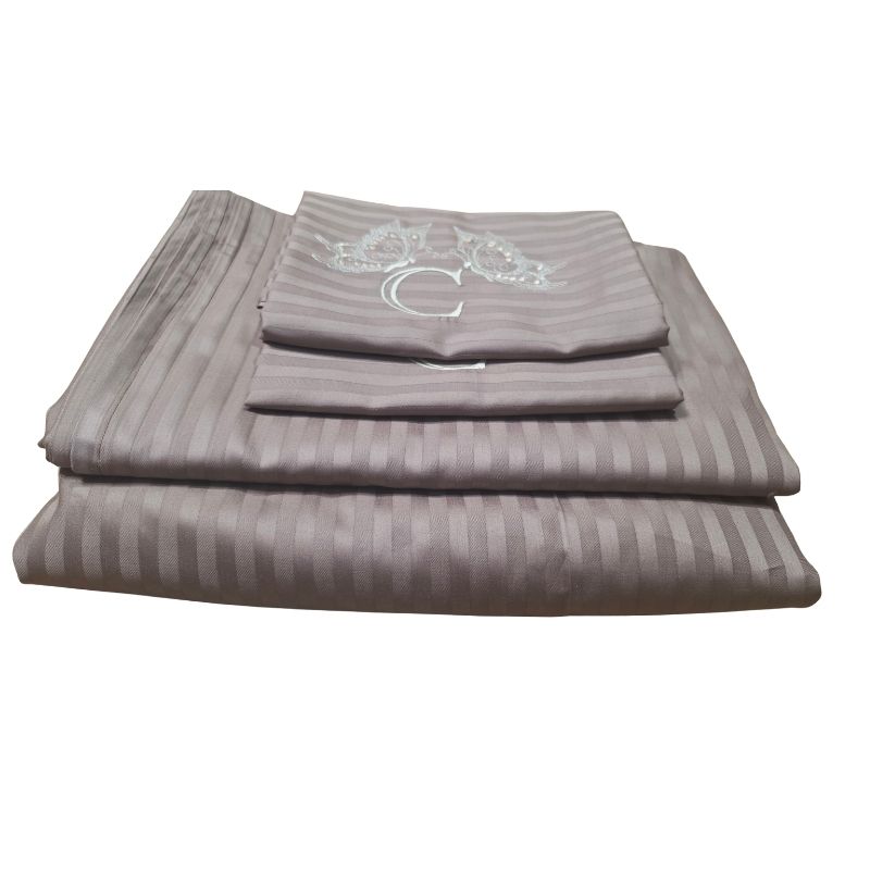 Lenjerie de pat pentru 2 persoane, 4 piese, damasc satinat, Maro, brodata