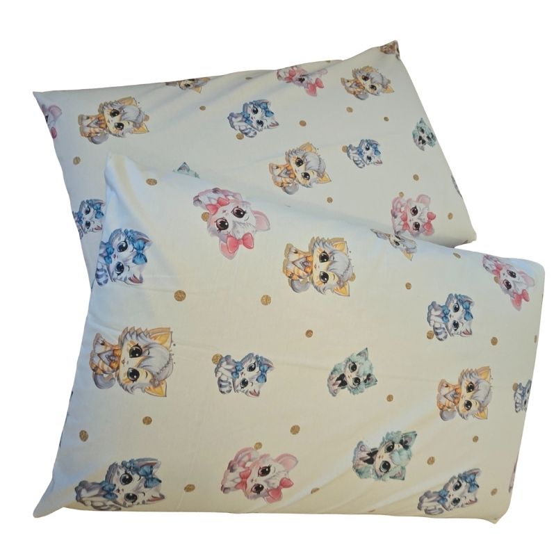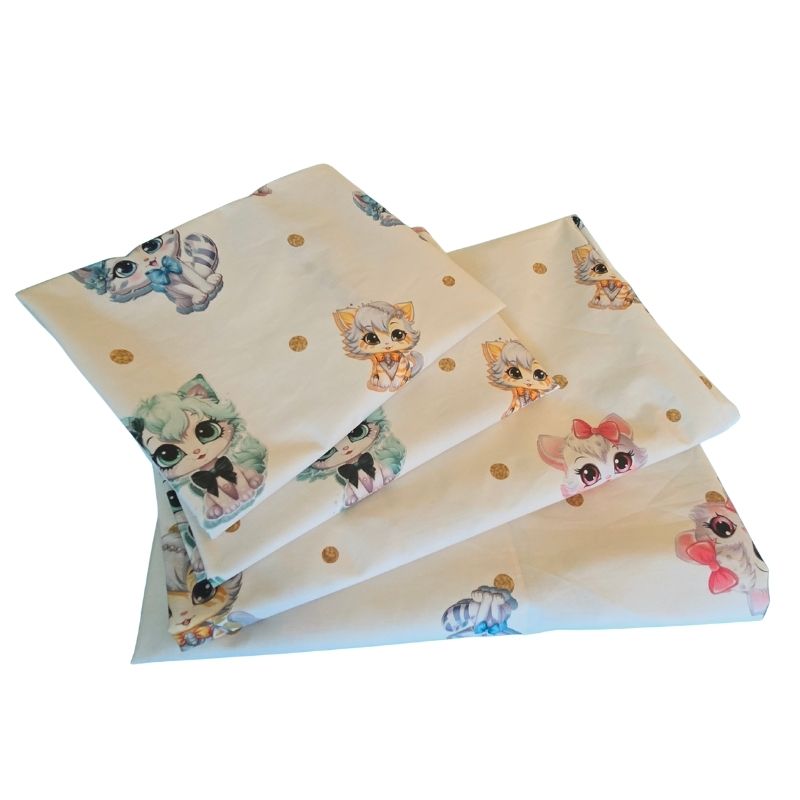 Pisici Colorate ARIALE aduce un strop de eleganță și prospetime in dormitorul tău cu un imprimeu delicat cu pisici pe un fond alb imaculat. Realizată din bumbac ranforce, imprimat digital, această lenjerie imbină frumusețea designului cu confortul și durabilitatea materialelor naturale.