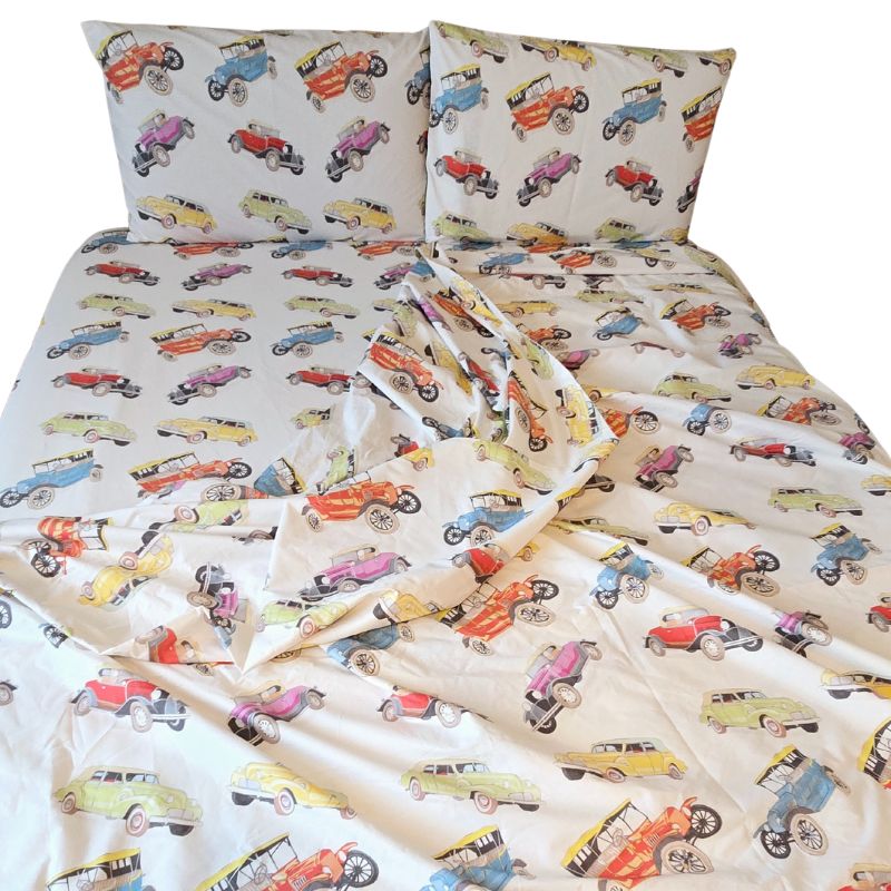🚗 Lenjeria “Retro Cars” by Ariale – Energie, culoare și confort autentic din bumbac 100%