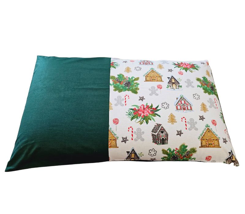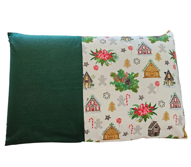 Designul acestor fete de perna aduce in prim-plan elementele clasice ale sarbatorilor de iarna. Vetrate in imagini cu turta dulce delicioasa, casute de poveste si frumoasa floare de Craciun, aceste fete de perna creeaza o atmosfera calda si primitoare in dormitorul dumneavoastra.