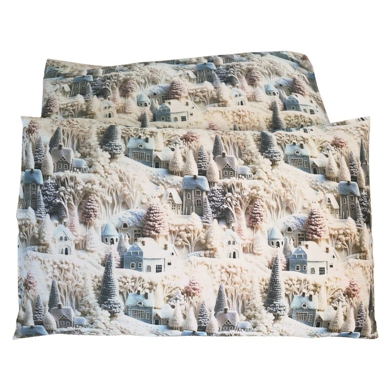 Set 2 fețe de pernă bumbac 100% – Imprimeu „Satul de iarnă fermecat”