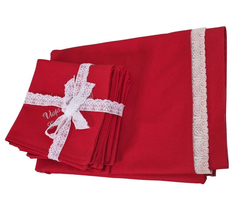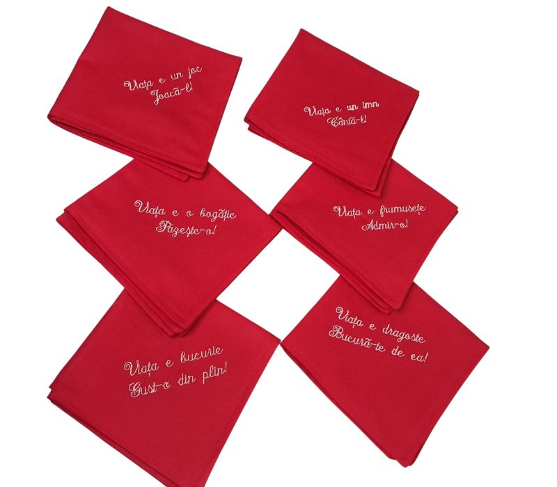 -6 servetele cu dimensiunea de 35*35cm, brodate, rosu.